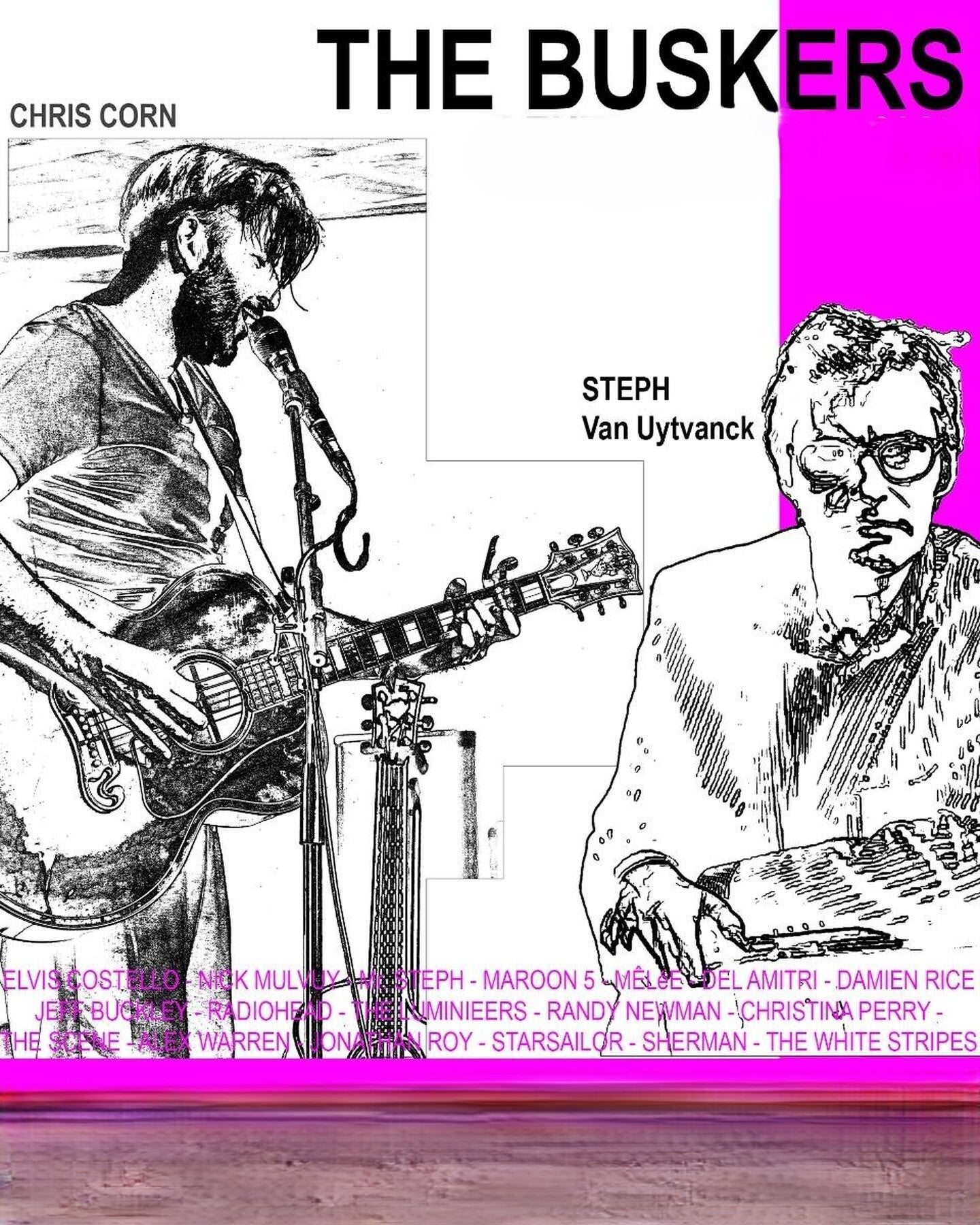 Steph Van Uytvanck & Chris Corn, beiden gekend van o.a. The Voice van Vlaanderen besloten om de rock- en popgeschiedenis van de afgelopen 30 jaar in een busker-vorm te gieten. Vormomd als straatmuzikanten brengen ze met stemmen, gitaar, mondharmonica, kazoo en een draagbare piano het beste van de straat tot op jouw event. Ideaal als welkoms act, maar evenzeer een aanrader om helemaal centraal op jouw event te worden uitgespeeld. Geef voor aanvang van het event jouw favoriete nummer(s) door en we laten ze deel uitmaken van onze set.